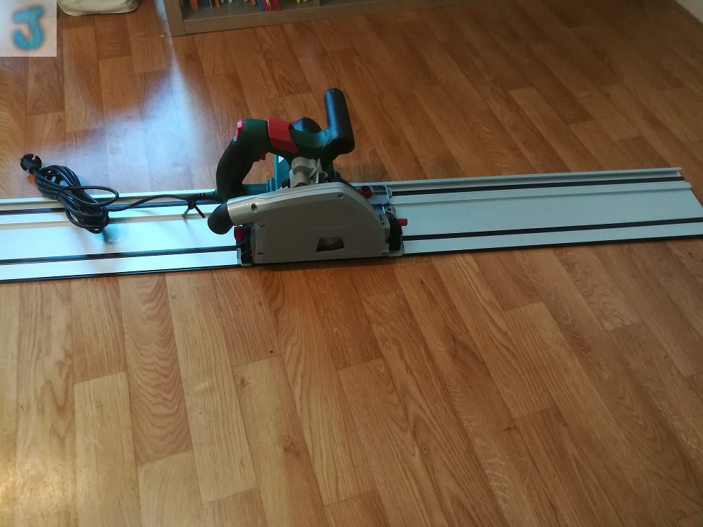 Je propose à la journée ou sur plusieurs jours ma Scie circulaire plongeante sur rails (avec fixations du rail)